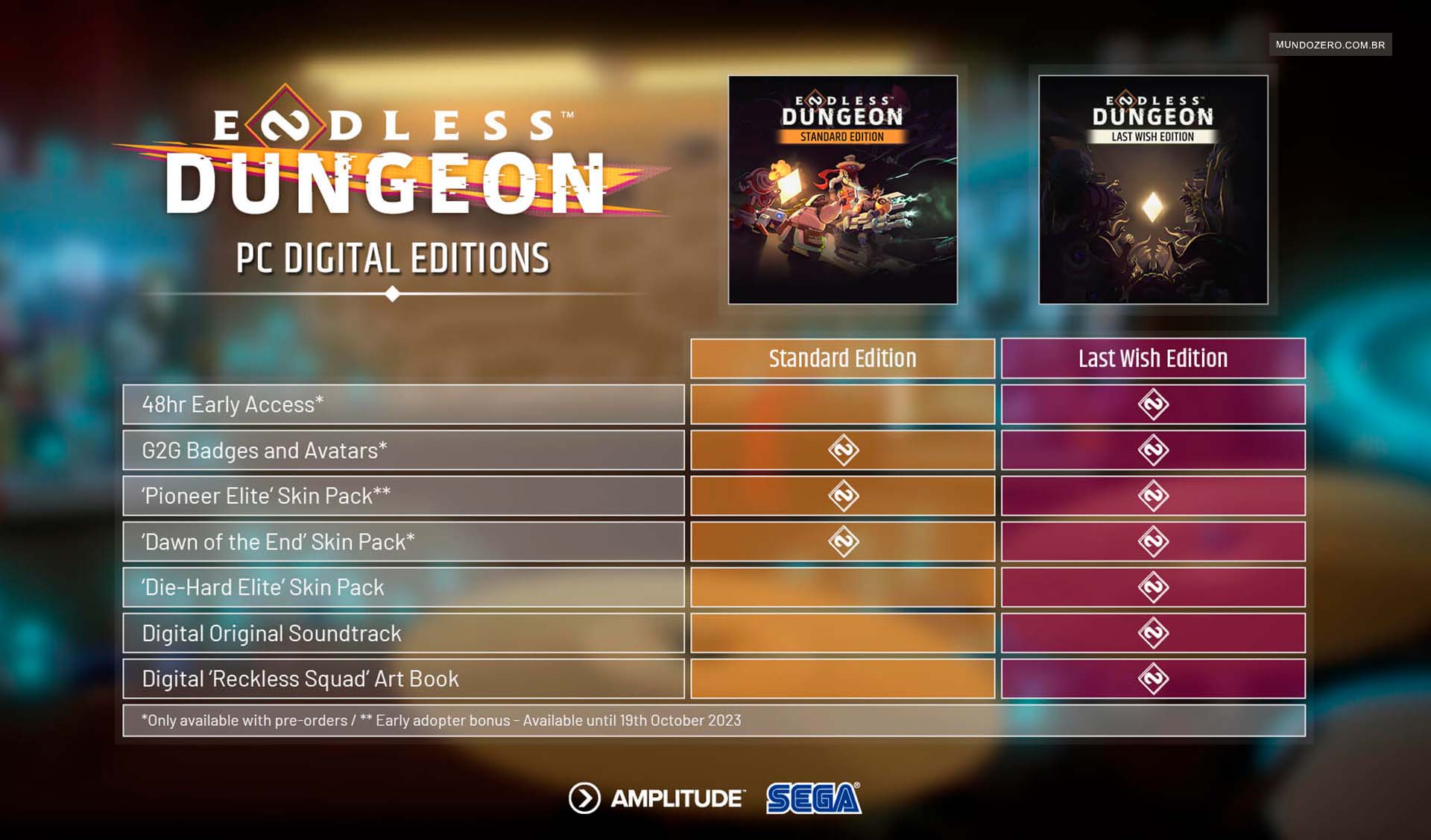 É difícil acreditar, esse dia finalmente chegou e ENDLESS Dungeon agora está disponível para PC, PlayStation e Xbox para todos que compraram a Edição Last Wish. Quem comprou a Edição Padrão poderá jogar no lançamento desta quinta-feira, 19 de outubro.