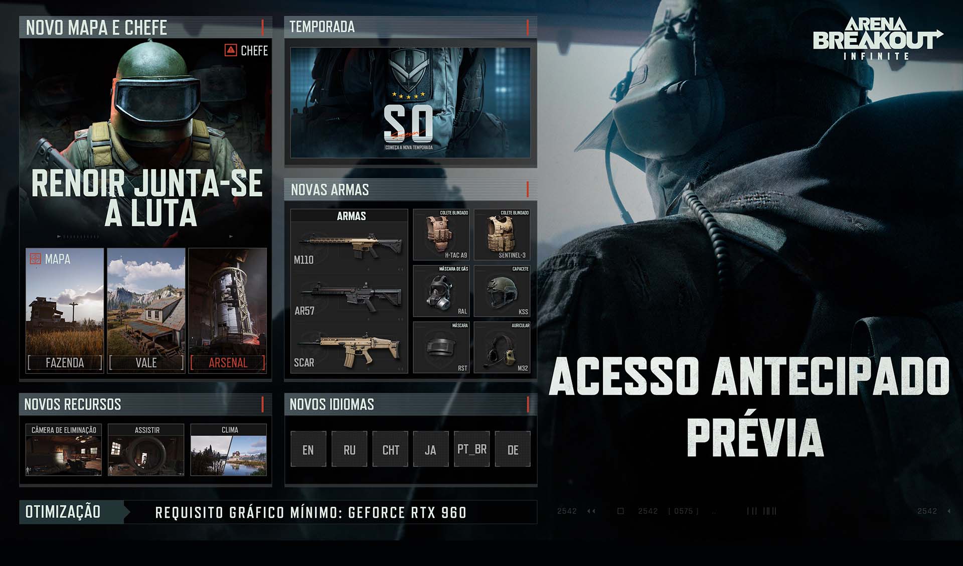 Além disso, quatro novos idiomas serão suportados no lançamento do Acesso Antecipado: alemão, japonês, português e russo, garantindo que jogadores dessas regiões possam mergulhar na emocionante ação de saque e tiro de Arena Breakout: Infinite.