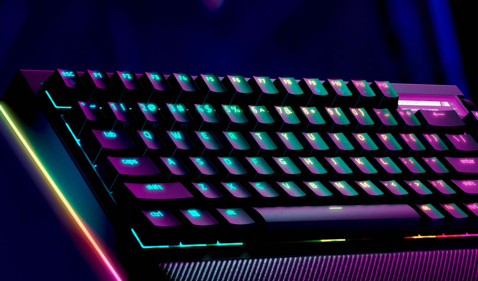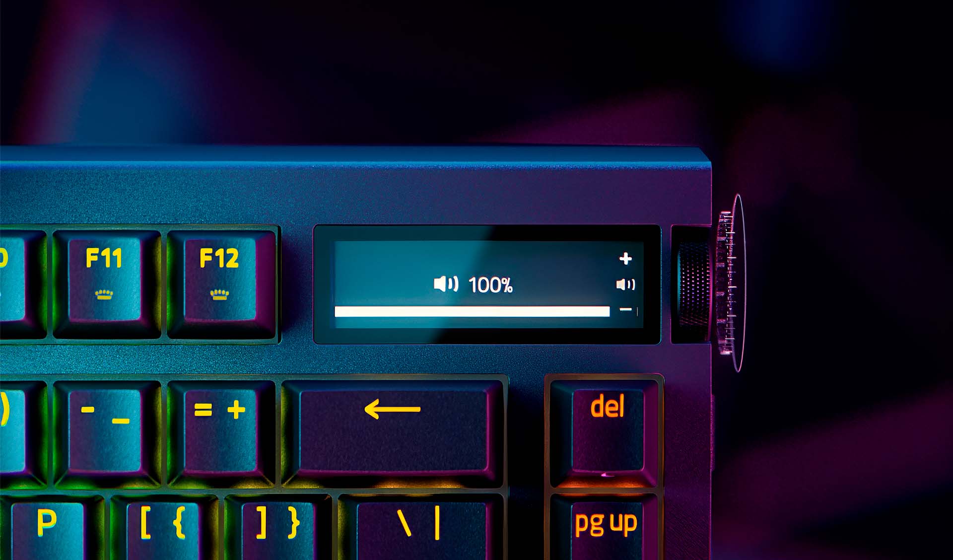 O display OLED permite que os gamers visualizem informações chave, como métricas do PC, status do teclado, animações personalizadas e o medidor de áudio.
