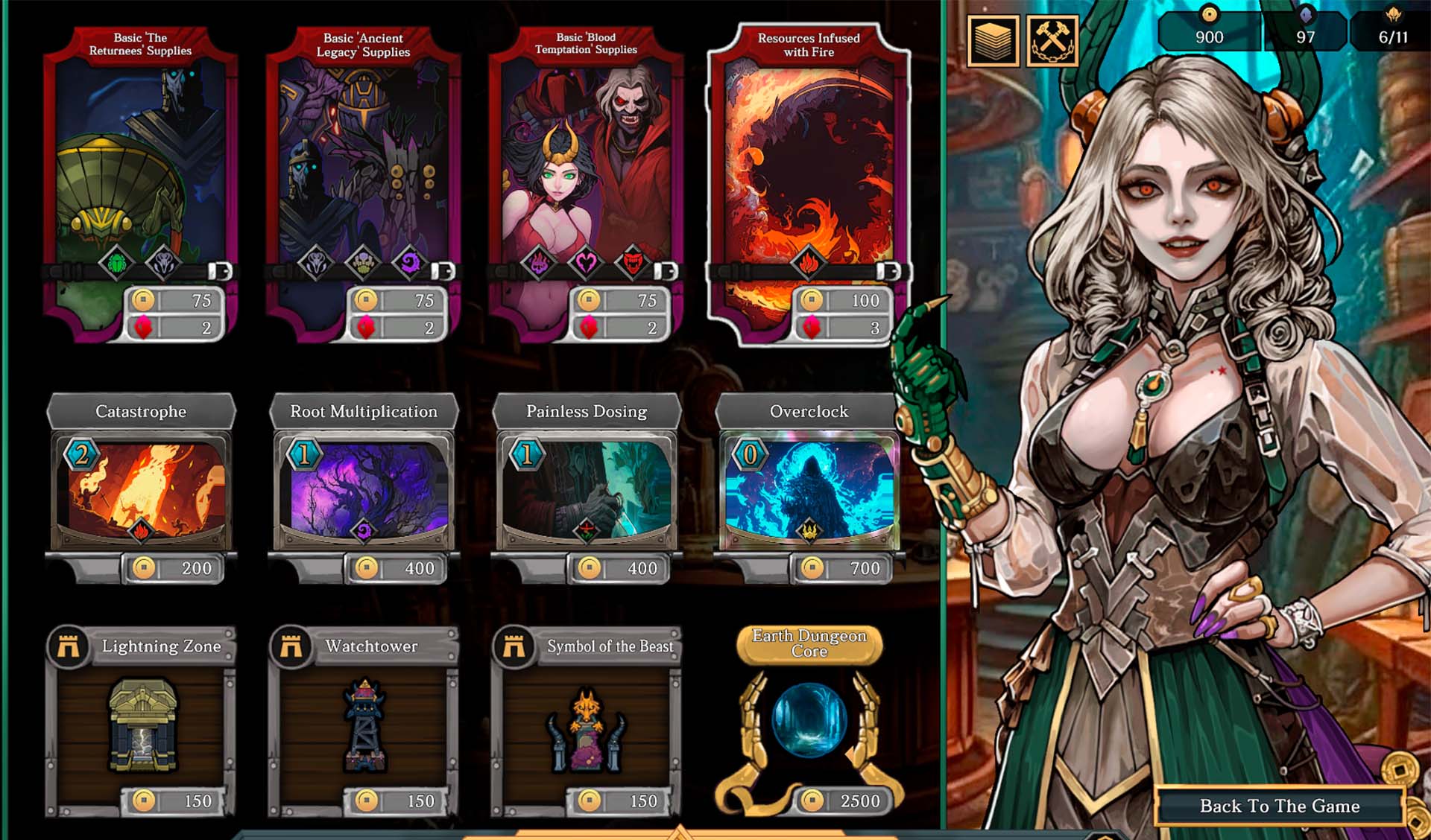O título aposta em uma jogabilidade baseada na construção de baralhos, onde as cartas representam habilidades mágicas e unidades de combate. Com um sistema de combate automatizado, os jogadores precisam gerenciar estrategicamente seus recursos para fortalecer suas defesas e impedir os ataques constantes de aventureiros e rivais.