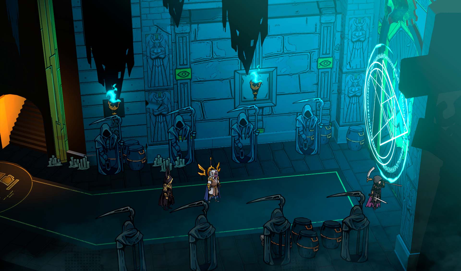 É aí que entramos, assumindo o papel de Monarca da Masmorra, um regente encarregado de proteger a masmorra e restaurar a glória de sua deusa. Essa premissa adiciona uma camada interessante no contexto do jogo, mas, por enquanto, a narrativa se mantém no básico, funcionando mais como um plano de fundo do que como um elemento central.