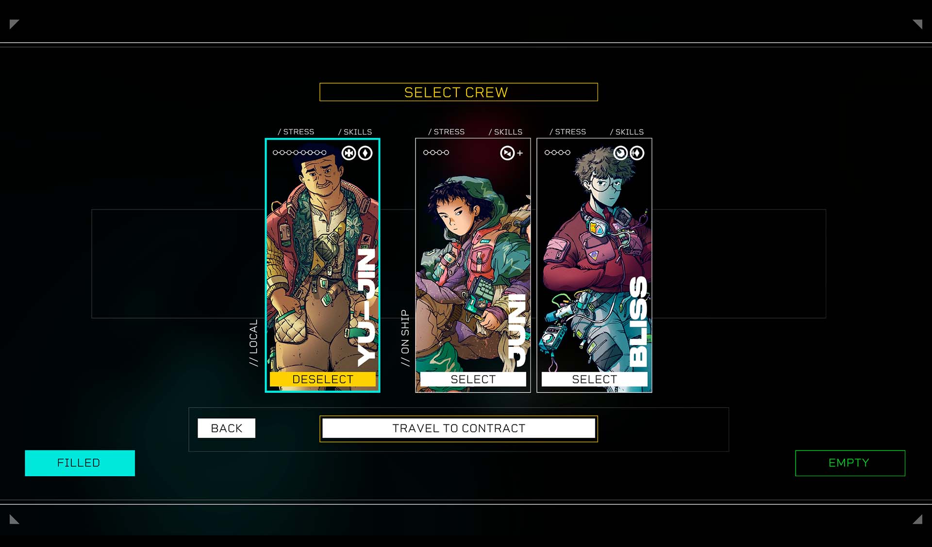 Além disso, os contratos representam uma evolução significativa em relação às tarefas do primeiro. Enquanto em Citizen Sleeper as missões geralmente envolviam trabalhos fixos dentro da estação, Starward Vector traz contratos que exigem planejamento a longo prazo, equilibrando risco e recompensa.