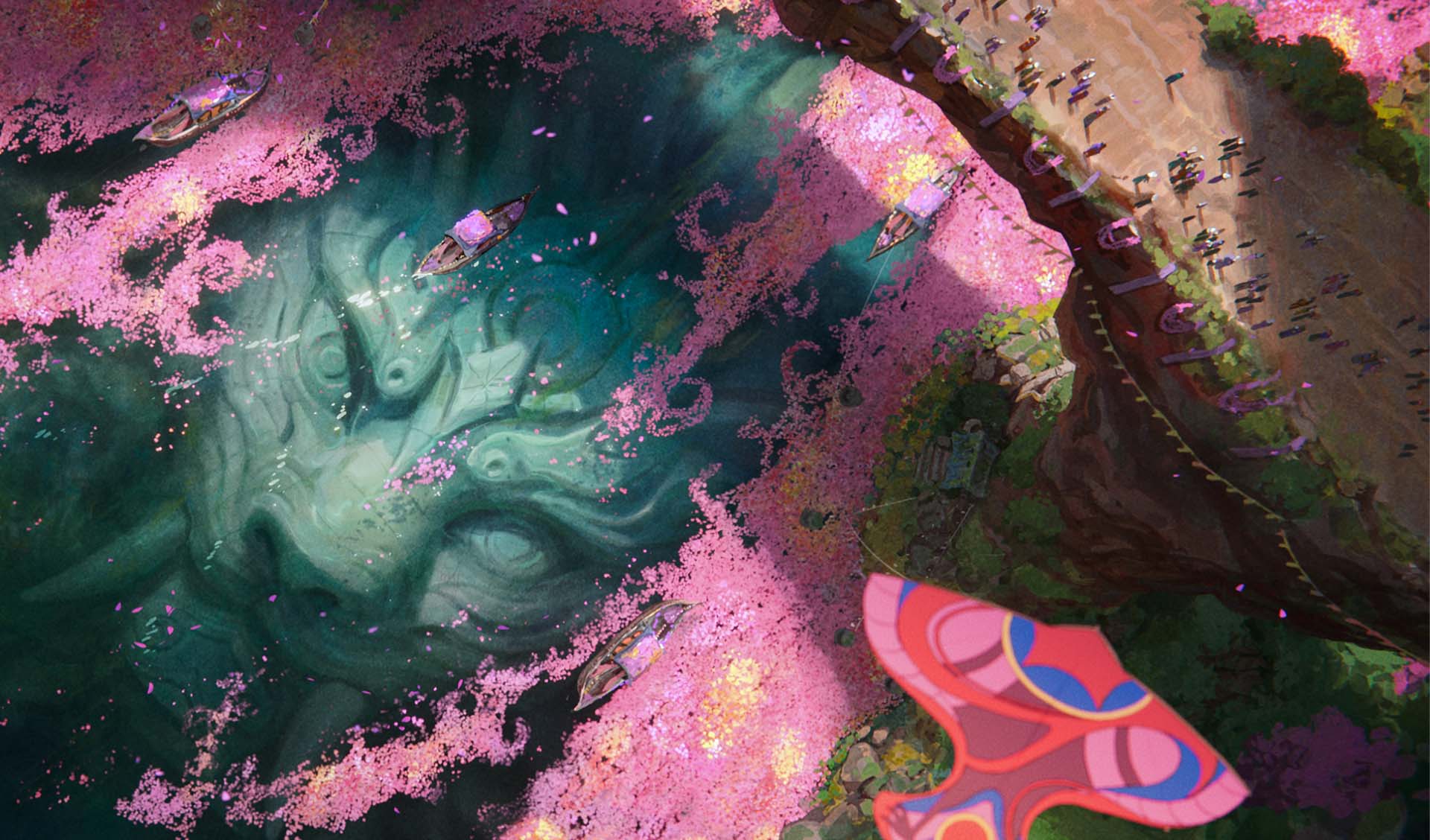 O uso de pétalas flutuantes como elemento narrativo é constante: ora como metáfora de vida, ora como sinal de despedida. A presença de luzes filtradas por folhas e sombras que se estendem sobre personagens silenciosos nos remete ao eterno embate entre tradição e mudança, vida e morte, presença e ausência.