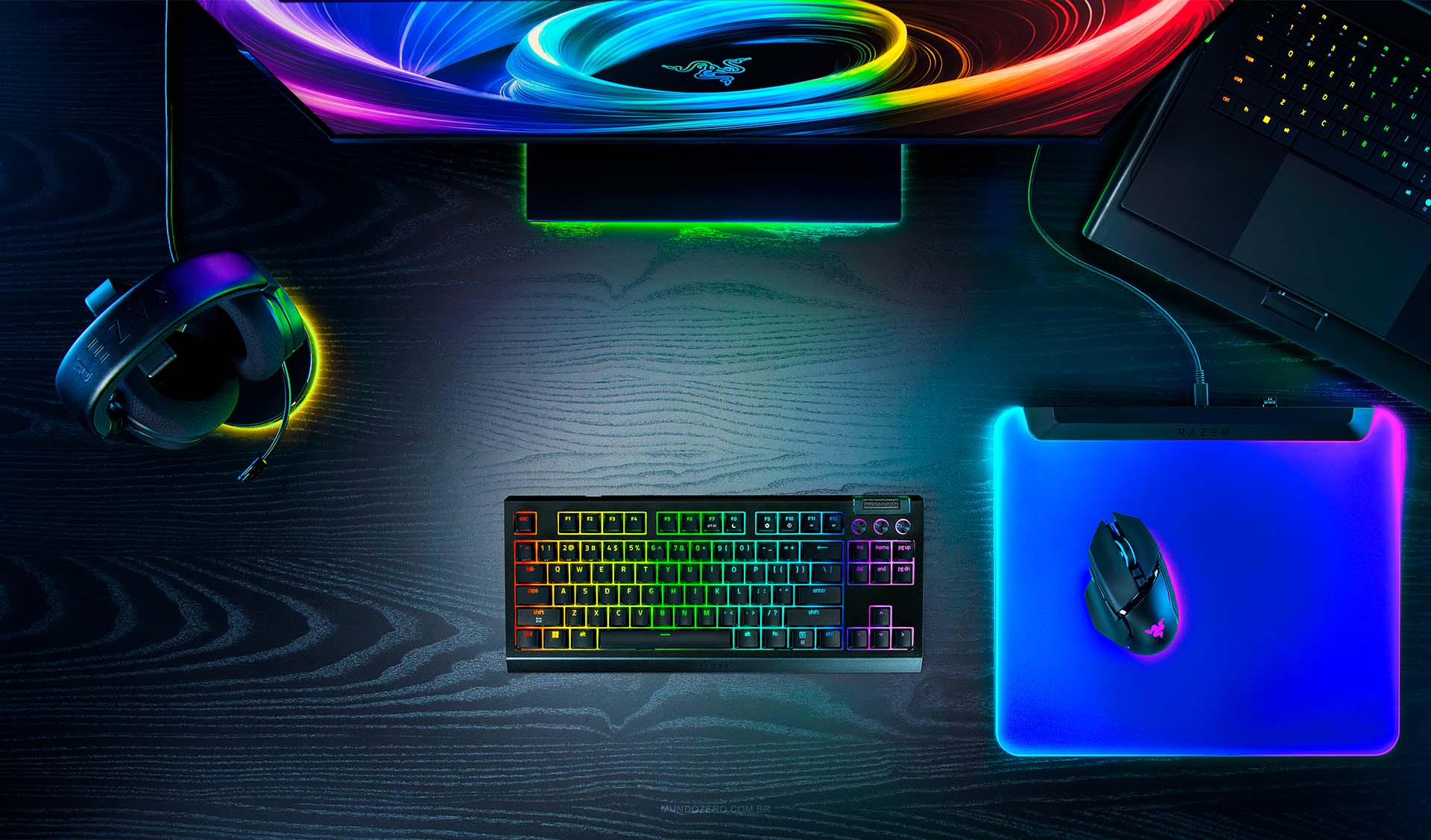 E para manter o setup limpo, o mesmo dongle USB pode conectar o teclado e um mouse Razer, liberando espaço e deixando a mesa organizada para o que realmente importa — jogar.