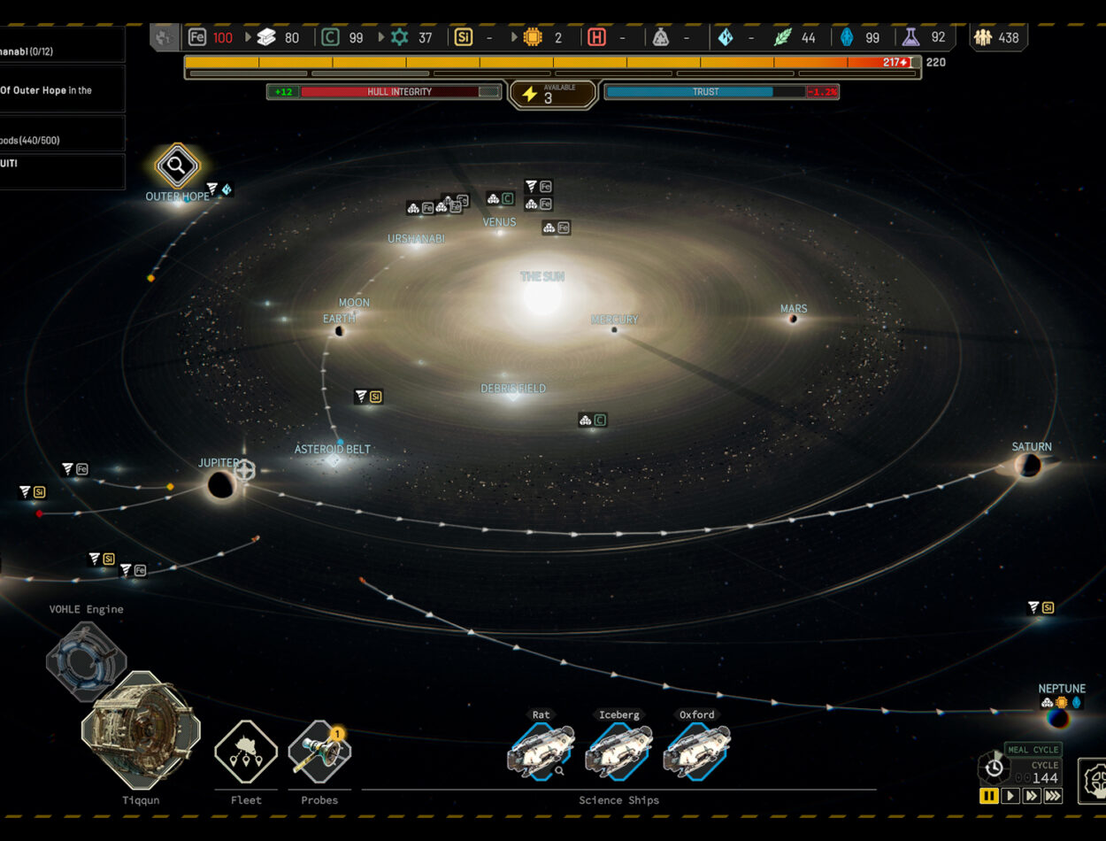O espaço é um lugar perigoso. Rupturas no casco, fontes de alimentação sobrecarregadas, incêndios elétricos… Cabe a você gerenciar esses riscos, lidar com emergências, criar soluções de energia de backup e ativar a Atividade Extra-Veicular.
