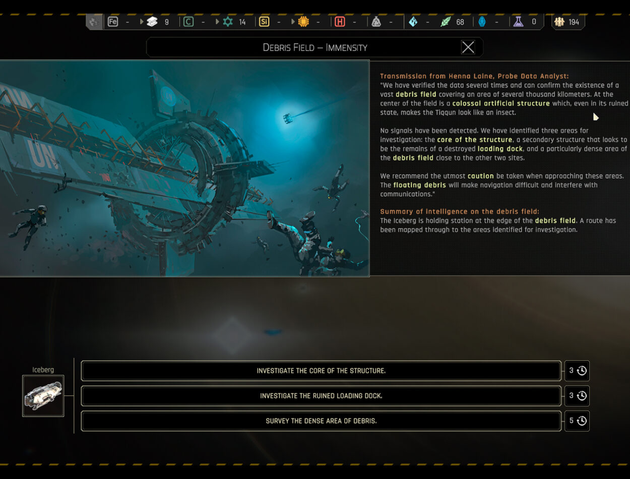 Uma população para gerenciar, sobreviventes para encontrar, criopods para recuperar… Mantenha a confiança de sua tripulação na corporação que iniciou este empreendimento ou enfrente o fracasso e o motim. Seis setores podem ser desbloqueados dentro da estação, cada um capaz de abrigar mais população, apoiar novos empregos e fornecer oportunidade de monitorar a tripulação com o Sistema de Escuta de Dados. Você vai trazer esperança para as pessoas?