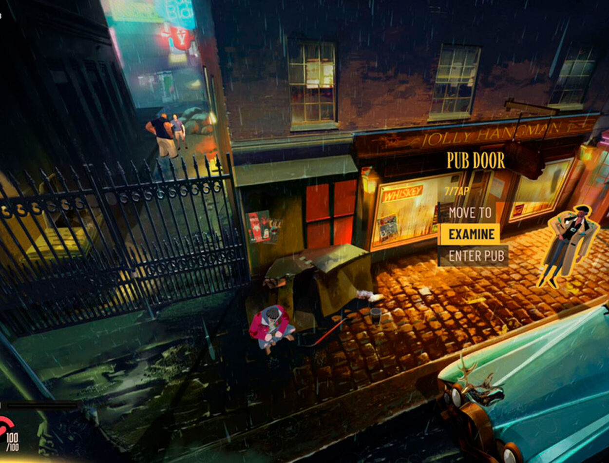 Um toque de modernidade em jogos de apontar e clicar, Sunday Gold pega os elementos tradicionais de jogos de apontar e clicar e os mistura com o combate acirrado dos RPGs e uma narrativa sombria.